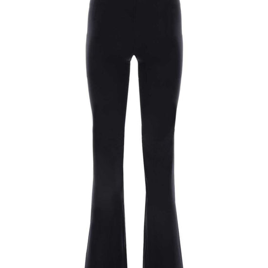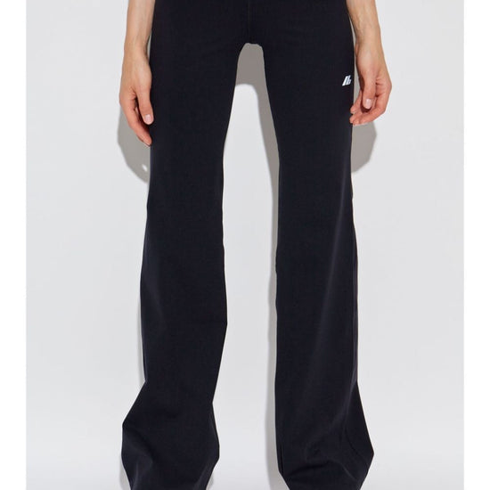 Black stretch-design logo print to the side elasticated waistband flared hem long length track pants