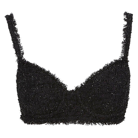 Top black bra, with adjustable self -cleaning braces, complete with support ferretto. tweed top size and fit - this piece fits true to size. we recommend you get your regular size. model is 1,75m / 5ft 8in wearing size 36 (fr)