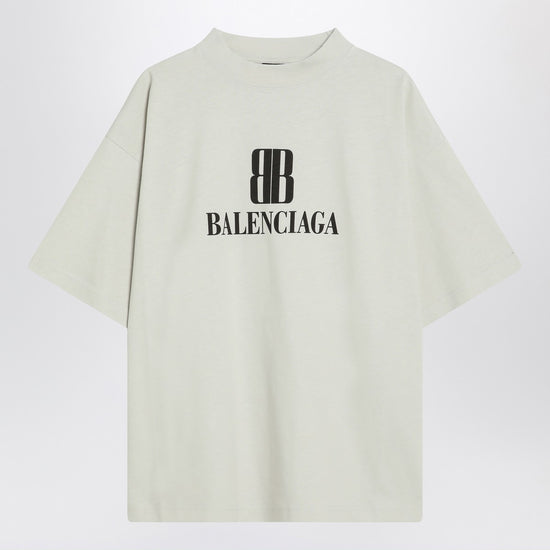 Balenciaga t-shirt in vintage white jersey, featuring a ribbed crew neck, short sleeves, a small bb logo printed on the front, and a medium fit. size and fit - model wears size 2 model measurements: height: 178 cm chest: 83 cm waist: 63 cm hips: 91 cm