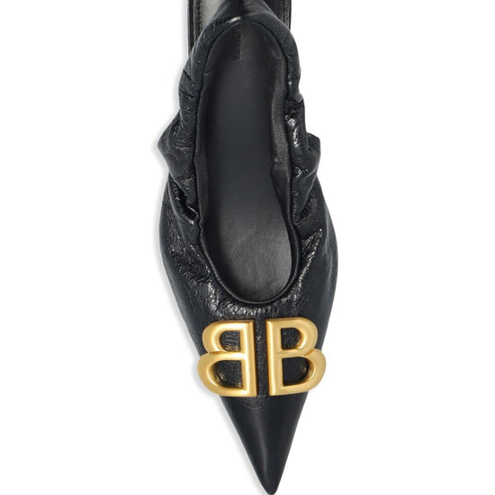 Arena lambskin, open heel, pointed toe, elasticated opening model, gold monaco bb logo on the upper, tone-on-tone covered heel and black sole. monaco leather slingback pumps size and fit - heel 5 cm