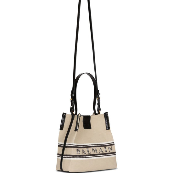Balmain Release Bucket Bag In Canvas And Calfskin
