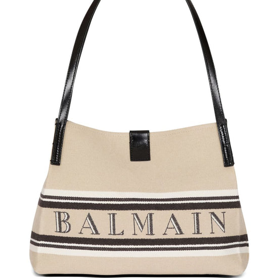 Balmain Medium Release Shopper Bag In Canvas And Calfskin