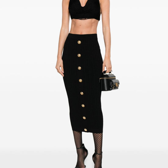 Balmain Cable-knit button-front midi fitted skirt