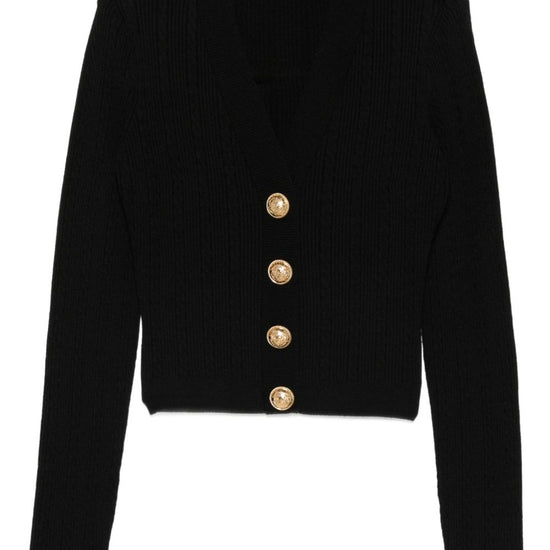 shoulder buttons v-necked cardigan size and fit - this piece fits true to size. we recommend you get your regular size. model is 1,75m / 5ft 8in wearing size 36 (fr)
