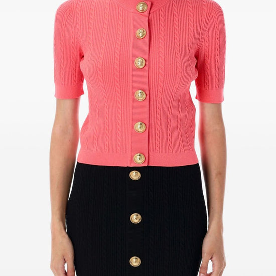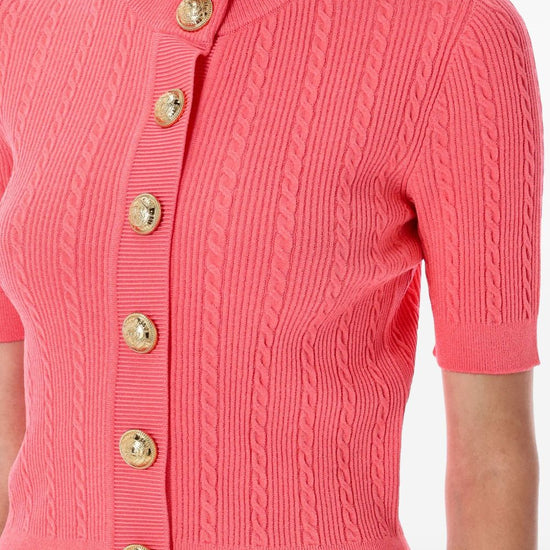 gold buttons crewneck cardigan size and fit - this piece fits true to size. we recommend you get your regular size. model is 1,75m / 5ft 8in wearing size 36 (fr)