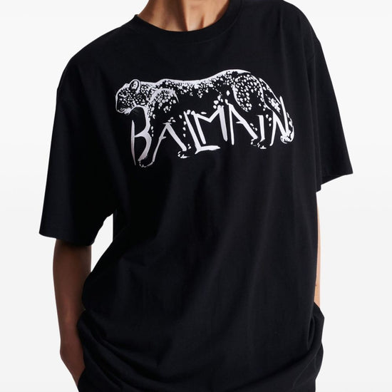 Black leopard print short sleeves crew neck cotton graphic print leopard print t-shirt