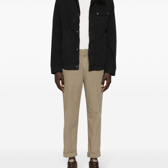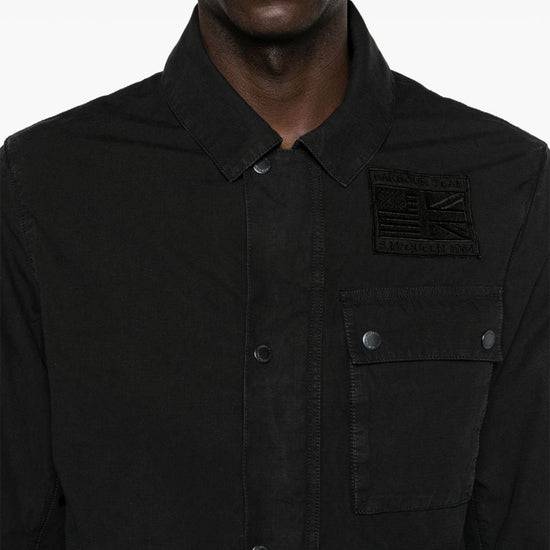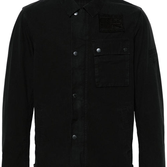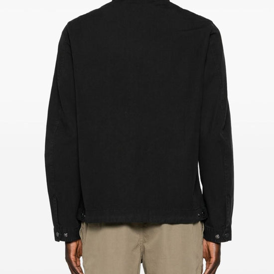 Black cotton ripstop texture logo patch at the chest embroidered logo at the sleeve classic collar front press-stud fastening concealed front zip fastening press-stud fastening cuffs stud-fastening chest pocket two side slit pockets unlined adjustable side straps straight hem workers cotton jacket size and fit - this piece fits true to size. we recommend you get your regular size. model is 1,84m / 6ft 1in wearing size m