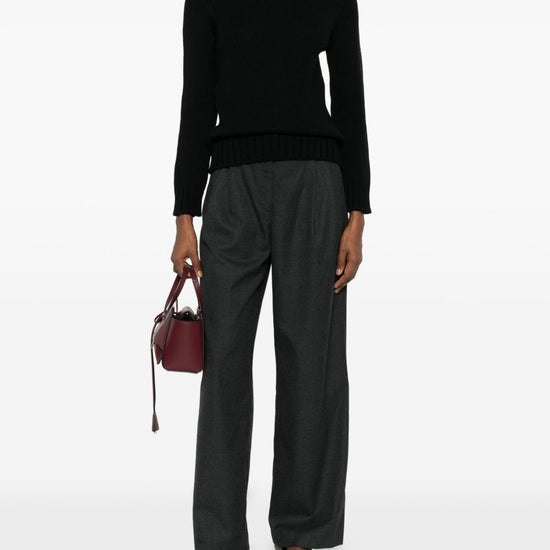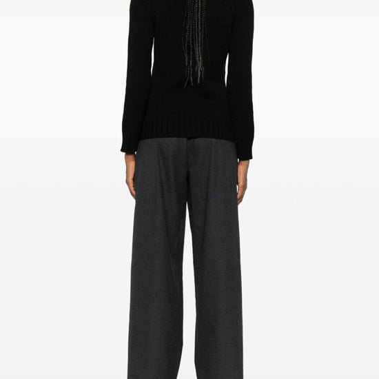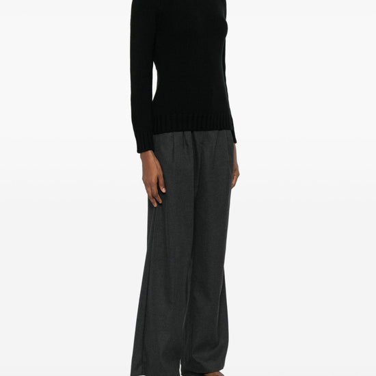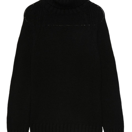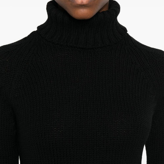 Black roll neck long sleeves ribbed knit straight hem wool turtle-neck jumper