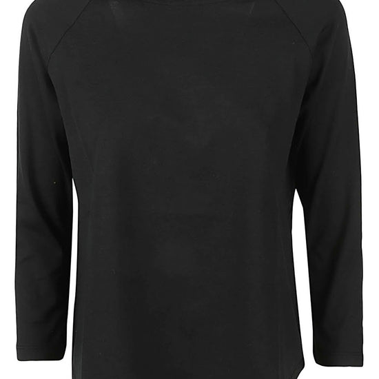 Black 3/4 sleeves cotton crewneck sweater. cotton sweater size and fit - this piece fits true to size. we recommend you get your regular size. model is 1,75m / 5ft 8in wearing size 40 (it)
