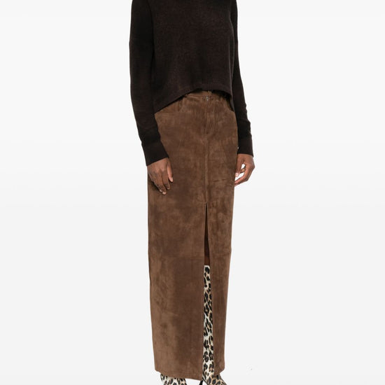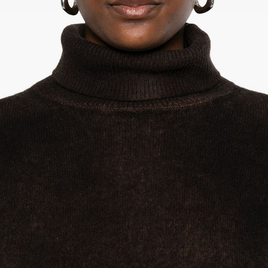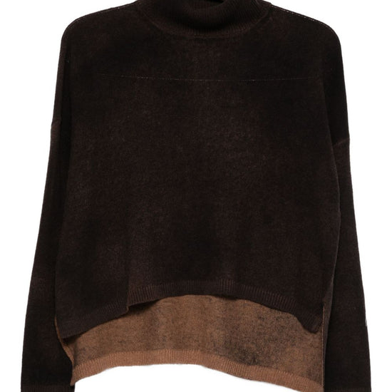 Brown turtleneck neckline layered effect long sleeves straight hem wool turtle-neck sweater