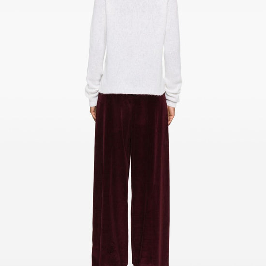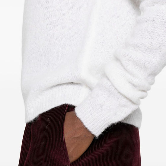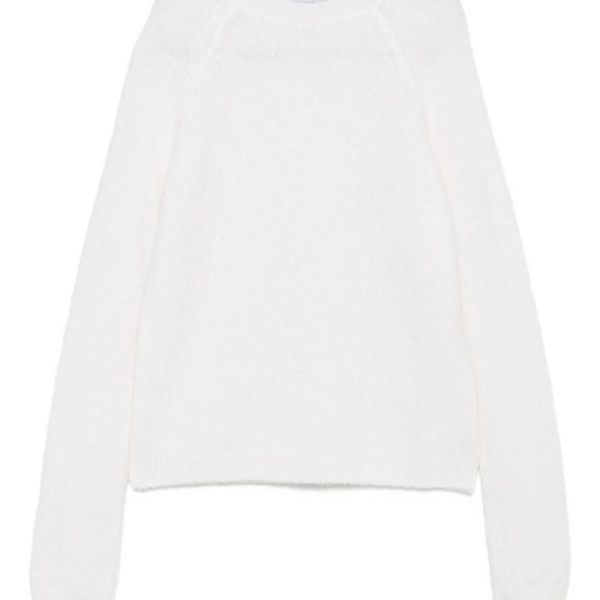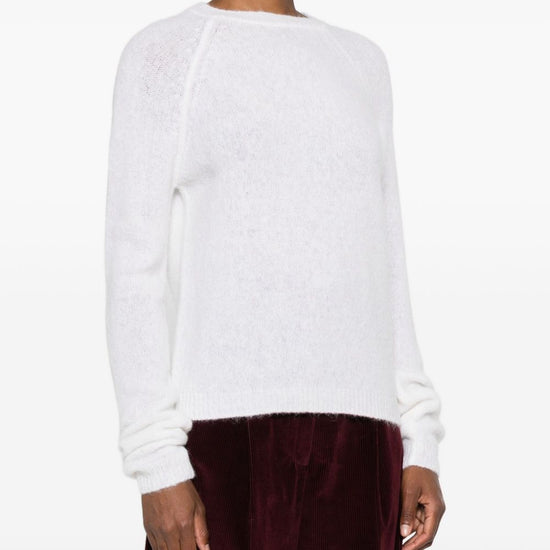 White raglan sleeves round neck long sleeves ribbed cuffs wool crewneck sweater