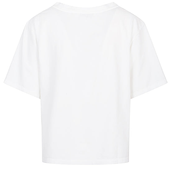 White t-shirt, half sleeves, crew neck, straight hem. cotton t-shirt size and fit - this piece fits true to size. we recommend you get your regular size. model is 1,75m / 5ft 8in wearing size 40 (it)