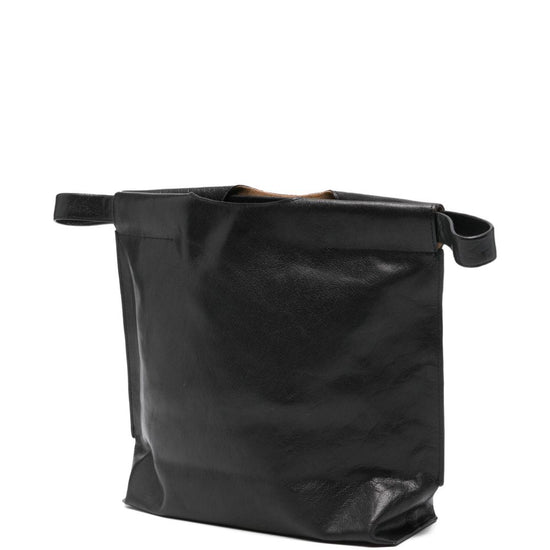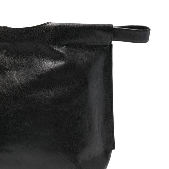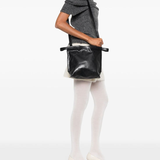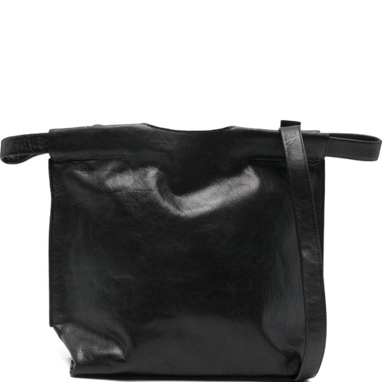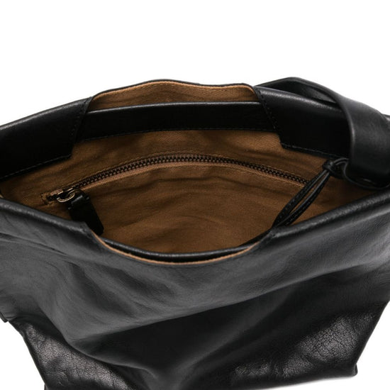 Black calf leather shoulder strap internal zip pocket small leather tote bag