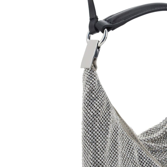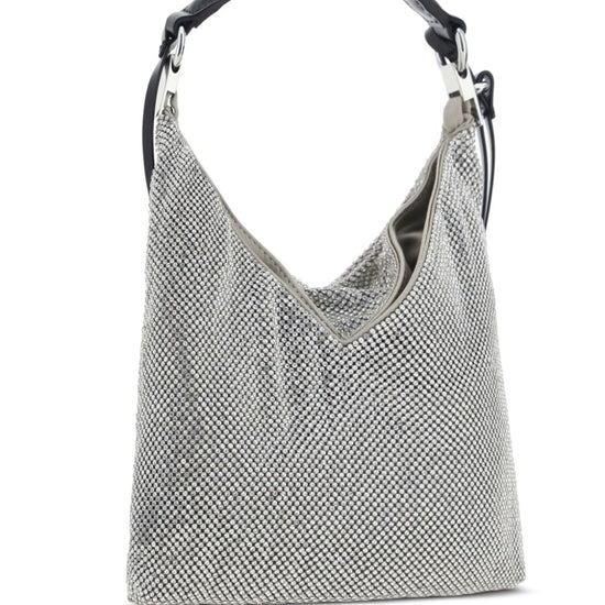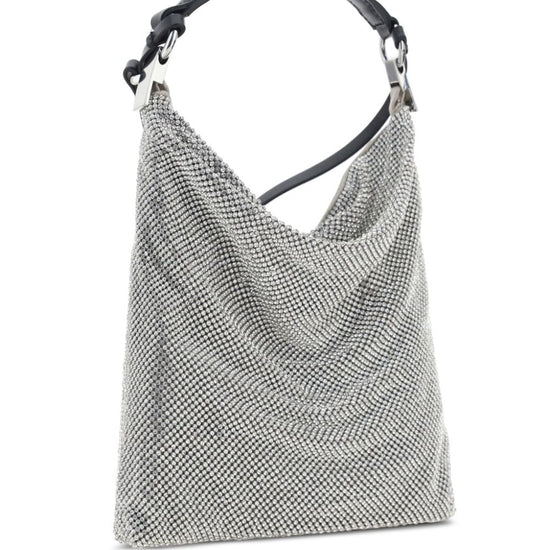 Silver-tone magnetic fastening single top handle single shoulder strap rhinestone embellishment draped detailing main compartment full lining bella ciao shoulder bag size and fit - width 8,27 in / 21 cm