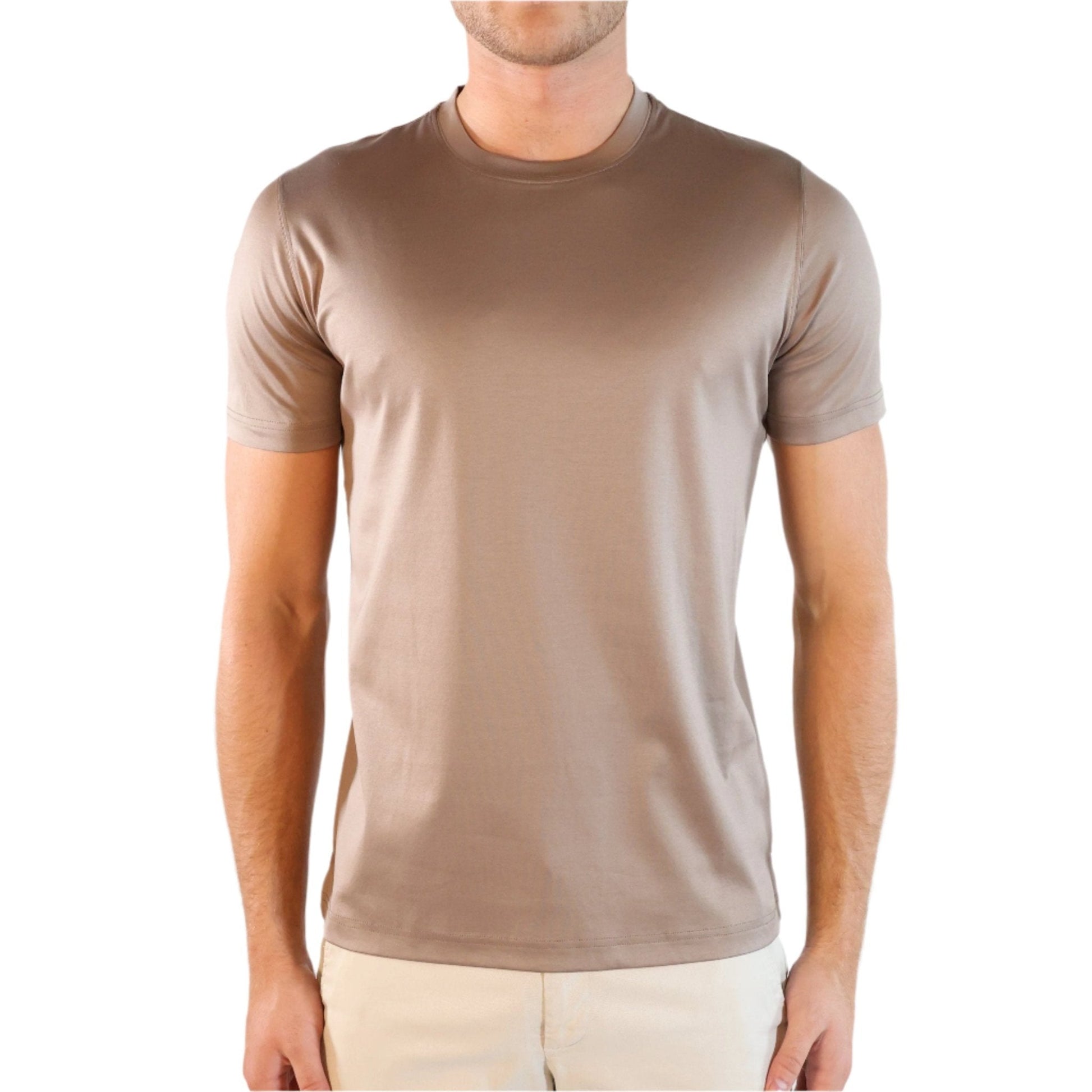 elevate your everyday essentials with the bespoke style mercerized cotton t-shirt in taupe. crafted from premium mercerized cotton, this t-shirt offers a luxuriously smooth texture and a subtle sheen that sets it apart from standard tees. the minimalist design ensures versatility, making it an ideal staple for both casual and refined looks. the classic taupe colorway exudes timeless elegance, while bespoke style’s meticulous attention to detail guarantees a high-quality, durable piece that seamlessly integrates into any wardrobe. step confidently into effortless sophistication and superior comfort with this must-have t-shirt from bespoke style.