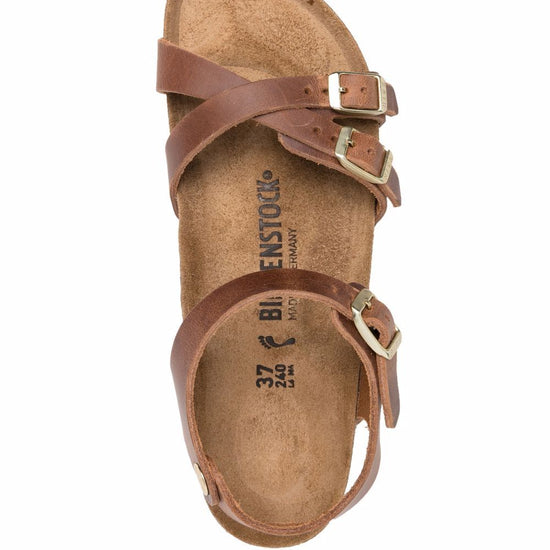 Cognac brown leather crossover strap at the toe pin-buckle fastening buckle-fastening ankle strap moulded footbed eva midsole rubber sole kumba sandals size and fit - narrow fit