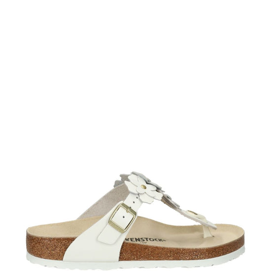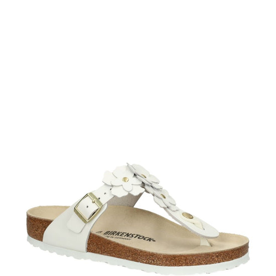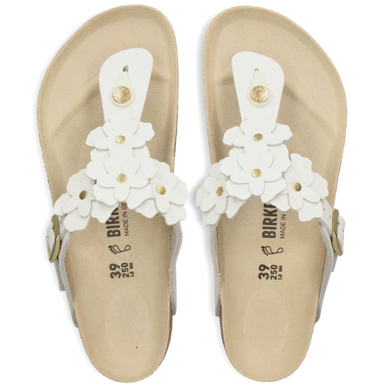 White leather flower detail buckle fastening t-bar strap gizeh thong sandals size and fit - regular fit