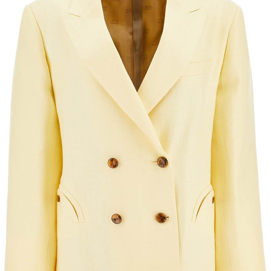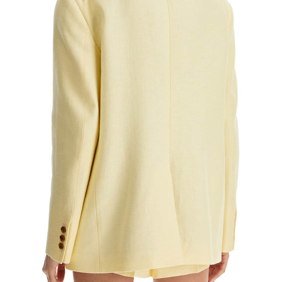 The clarity nightbreak blazer by blaze milano offers timeless elegance. made of light yellow linen, this oversized blazer combines italian style and comfort for spring-summer.