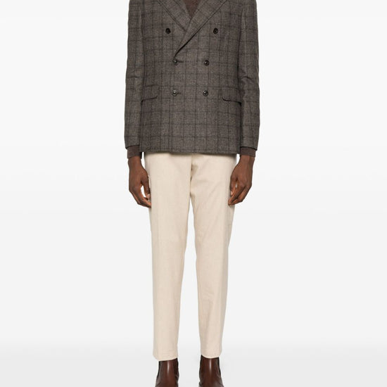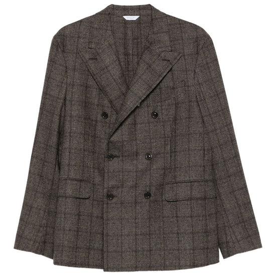 Brown wool blend front button fastening long sleeves side flap pockets wool blend double-breasted jacket