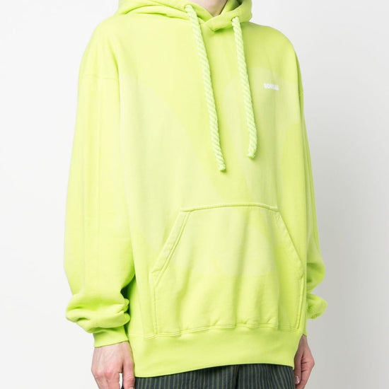 Logo-print drawstring hoodie from bonsai featuring lime green, cotton, drawstring hood, logo print to the front, front pouch pocket, long sleeves, ribbed cuffs and hem and straight hem. printed cotton hoodie size and fit - this piece fits true to size. we recommend you get your regular size. model is 1,84m / 6ft 1in wearing size m