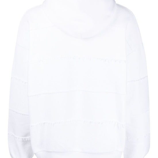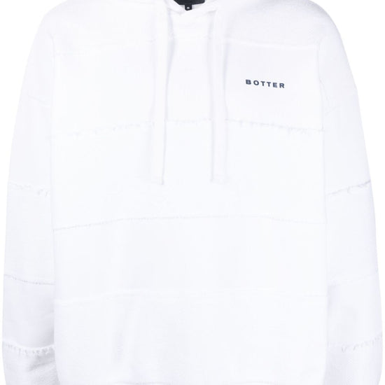 Logo-print drawstring hoodie from botter featuring white, organic cotton, logo print at the chest, drawstring hood, long sleeves and ribbed cuffs and hem. this item is made from at least 50% recycled or upcycled materials. for recycled synthetic clothing products, we highly recommend using a microfibre-catching washing bag to ensure that no microplastics that can pollute water are released in the process.. learn more about what makes a product conscious on our conscious criteria page. a righe organic cotton hoodie size and fit - this piece fits true to size. we recommend you get your regular size. model is 1,84m / 6ft 1in wearing size m