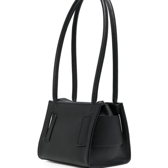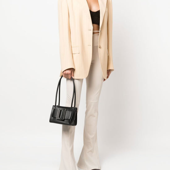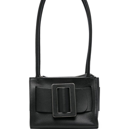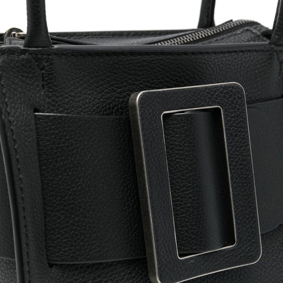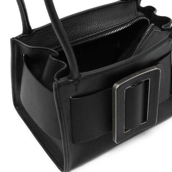 Bobby buckled tote from boyy featuring black, calf leather, decorative buckle detailing, belted waist, two long top handles and top zip fastening. bobby 18 soft leather handbag size and fit - width 7,09 in / 18 cm height 5,12 in / 13 cm depth 4,72 in / 12 cm handle 9,84 in / 25 cm