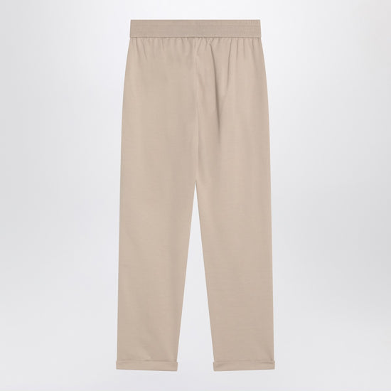 Beige cotton trousers by brunello cucinelli, characterized by an elasticized waist with drawstring, two side welt pockets with jewellery detail, and a cuff at the bottom of the leg. size and fit - model wears size s model measurements: height: 178 cm chest: 83 cm waist: 63 cm hips: 91 cm