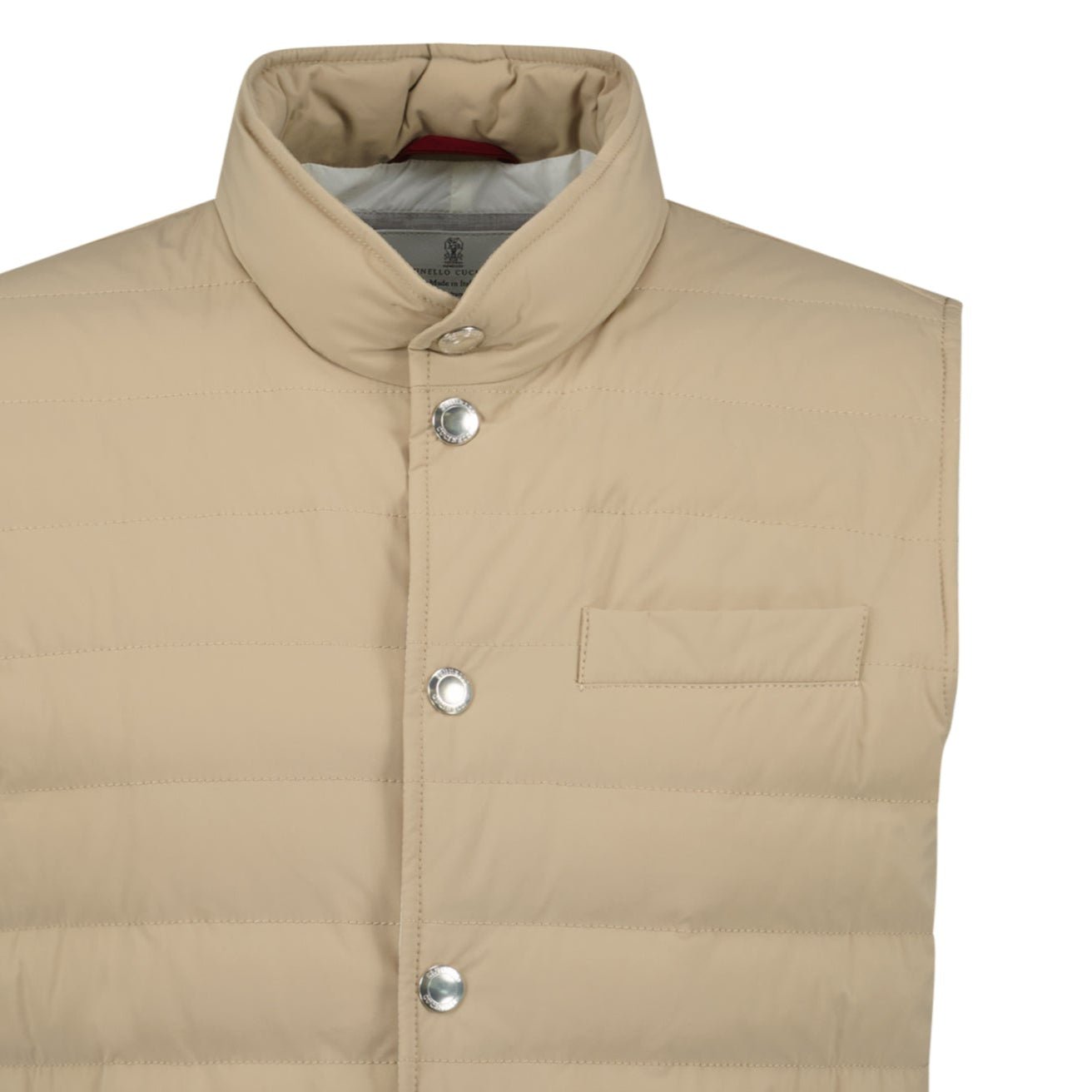 Brunello Cucinelli Button-Up Down Gilet Beige