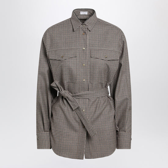 Brunello Cucinelli Check-pattern shirt with belt and Shiny Collar Detail