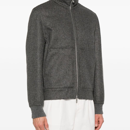 Brunello Cucinelli Check-pattern zip-up bomber jacket