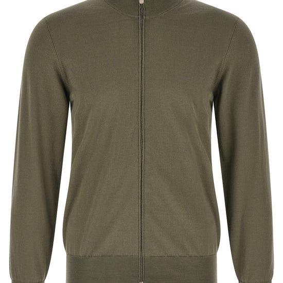 Light cotton cardigan, front zip closure, high neck, long cuffed sleeves, pockets, headband. size and fit - true to size fit