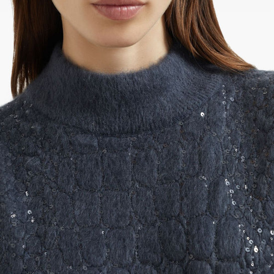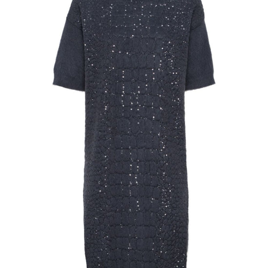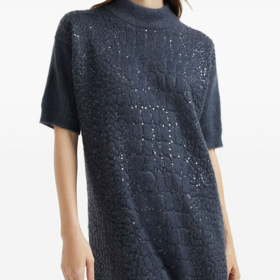 Brunello Cucinelli Mohair, virgin wool and cashmere knit dress with dazzling croc motif