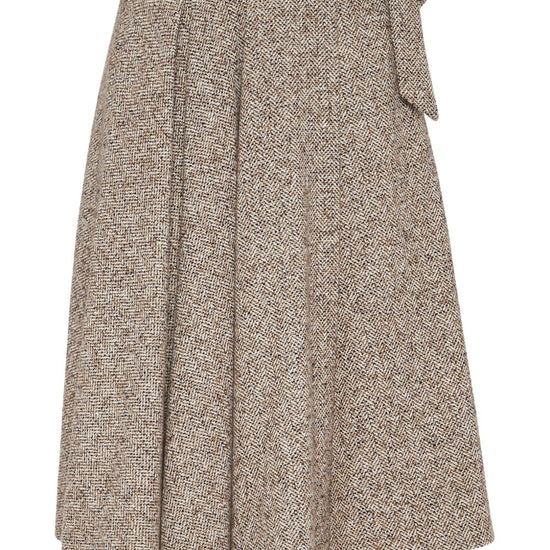 Beige textured finish side belt detail pleat detailing knee-length design wool skirt