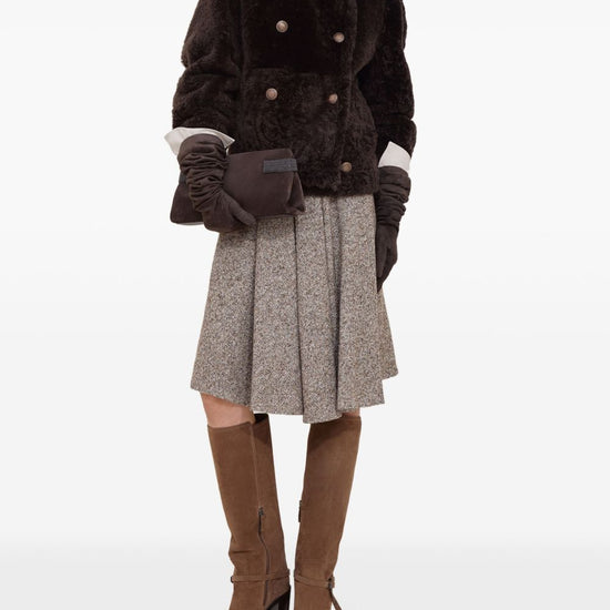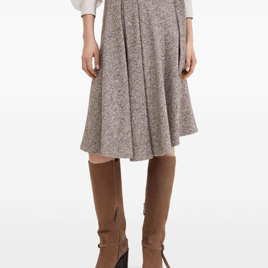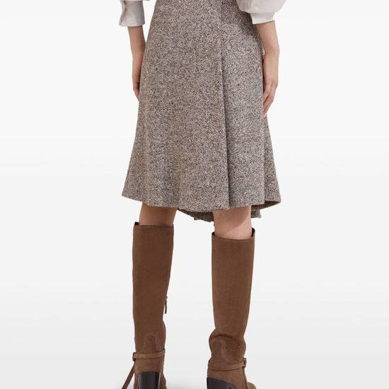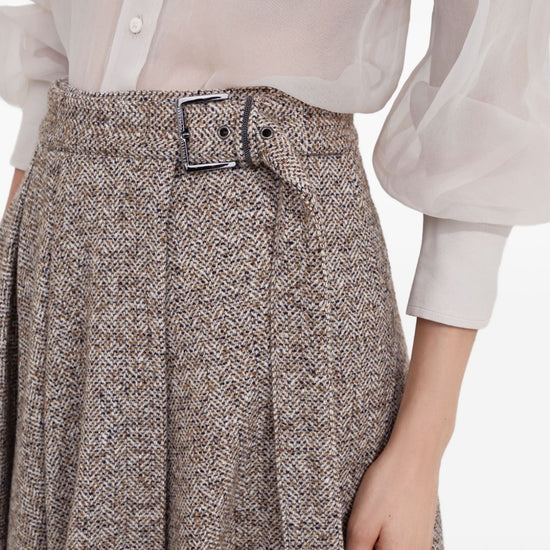 Brunello Cucinelli Flecked virgin wool and silk chevron kilt skirt with monili