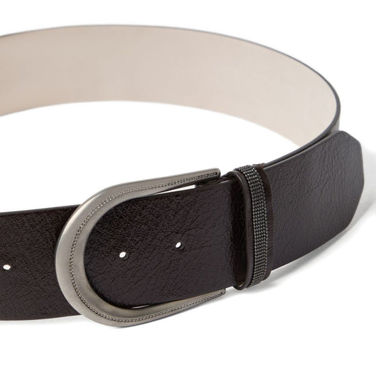 Dark brown silver-tone buckle multiple hole adjustments wide strap leather belt