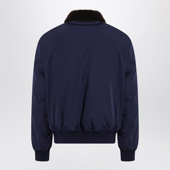 Brunello Cucinelli Indigo nylon puffer jacket with shearling collar