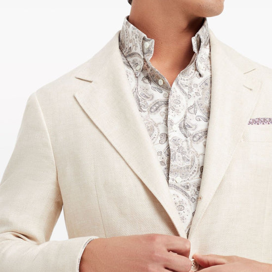 Brunello Cucinelli Linen, wool and silk diagonal deconstructed Cavallo blazer