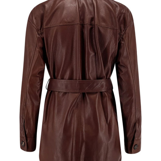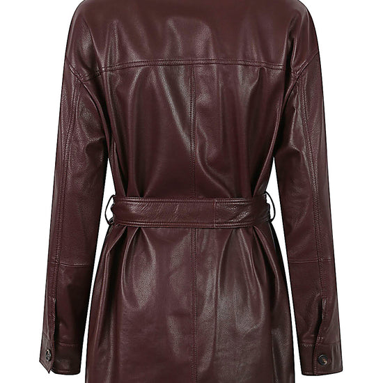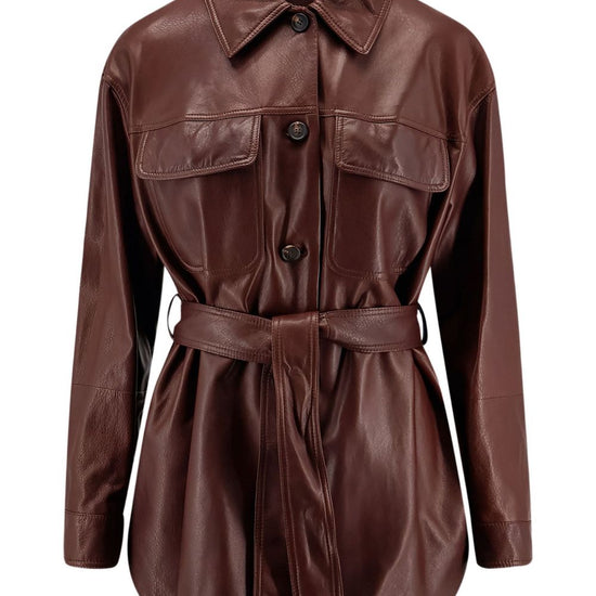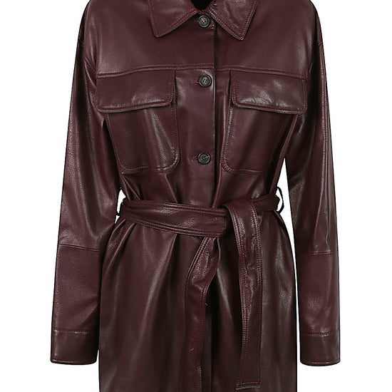 Leather jacket, long sleeves, button fastening, pointed collar and belt at the waist. leather jacket size and fit - this piece fits true to size. we recommend you get your regular size. model is 1,75m / 5ft 8in wearing size 40 (it)