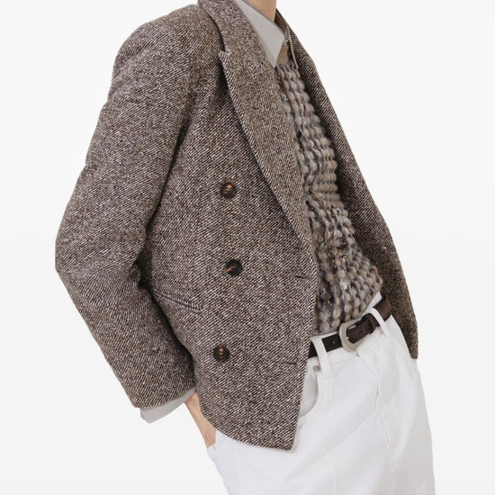 Brunello Cucinelli Virgin wool and silk mélange diagonal blazer with monili