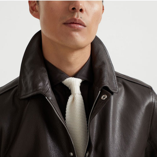 White crochet knit square ends silk tie size and fit - length: 150.0 centimetres.