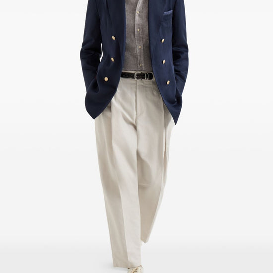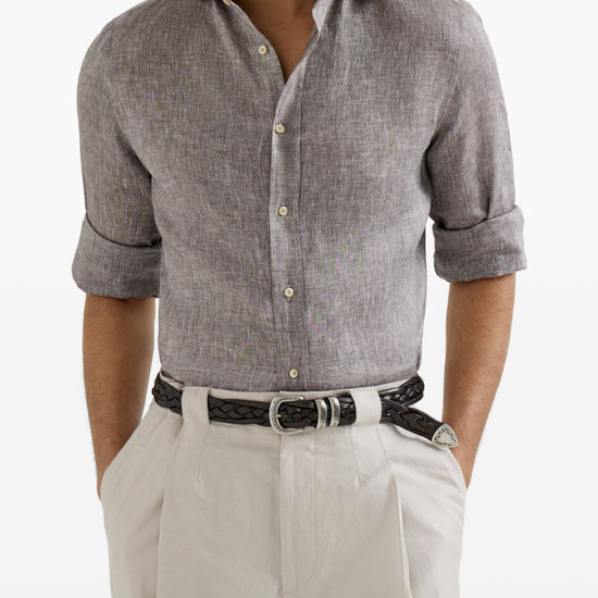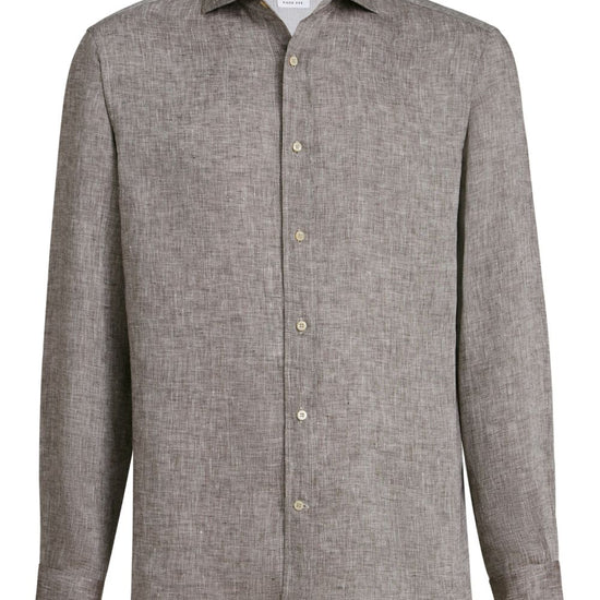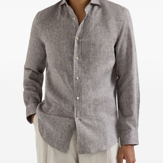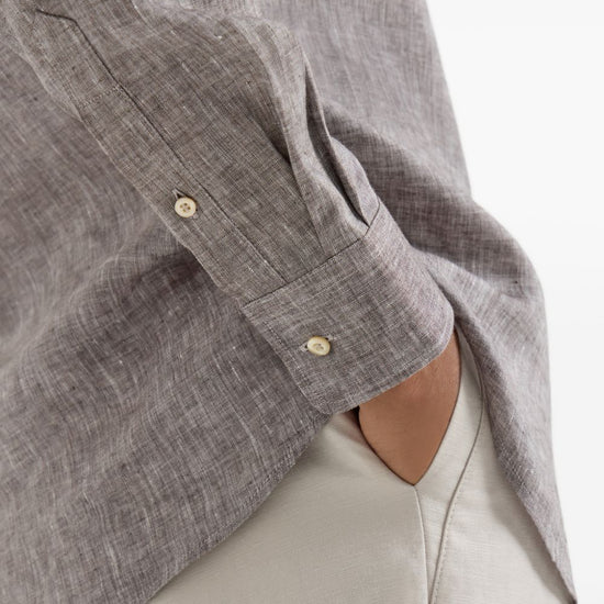 Hazelnut brown linen button fastening long sleeves buttoned cuffs linen shirt