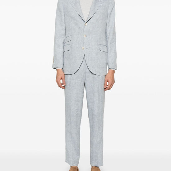 two diagonal pockets to the sides linen single-breasted suit size and fit - this piece fits true to size. we recommend you get your regular size. model is 1,84m / 6ft 1in wearing size 48 (it)
