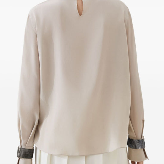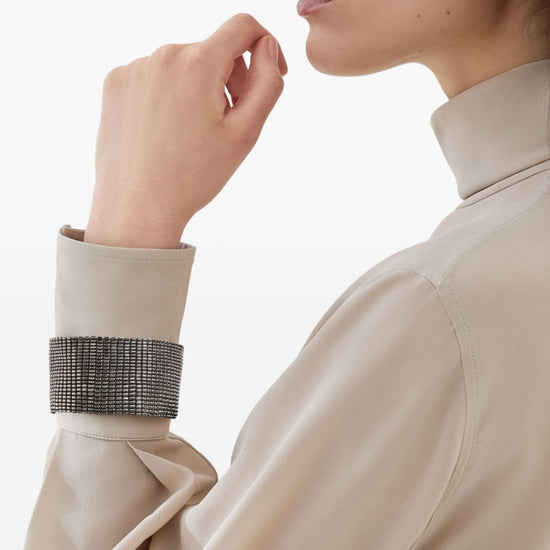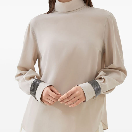 Brunello Cucinelli High-neck T-shirt in silk crêpe de Chine with Precious Bracelets