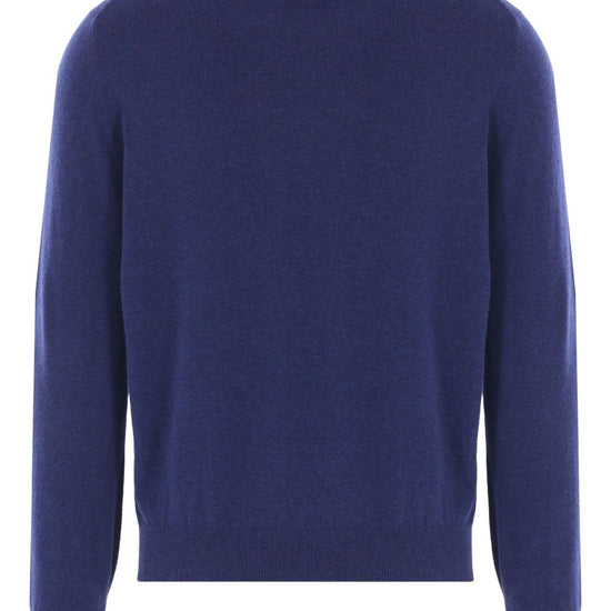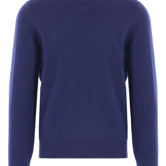 Sapphire blue, cashmere fabric, ribbed hem, round neck, long sleeves, mélange knit. cashmere crewneck jumper