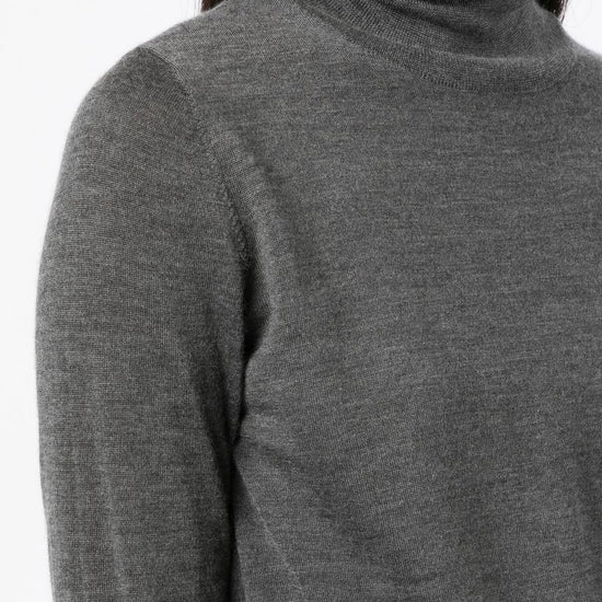 Anthracite grey cashmere-silk blend knitted construction speckle knit roll neck long sleeves  cashmere turtle-neck sweater