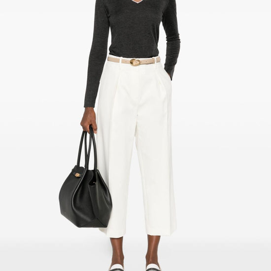 embellished neckline cashmere and silk v-necked sweater