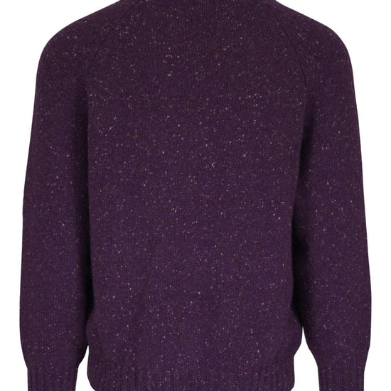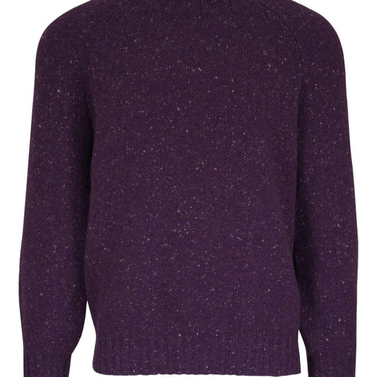 Purple raglan sleeves speckled pattern ribbed cuffs and hem crew neck cashmere crewneck sweater