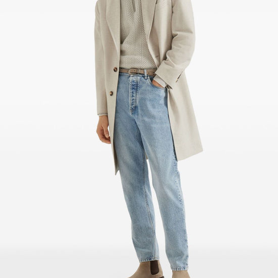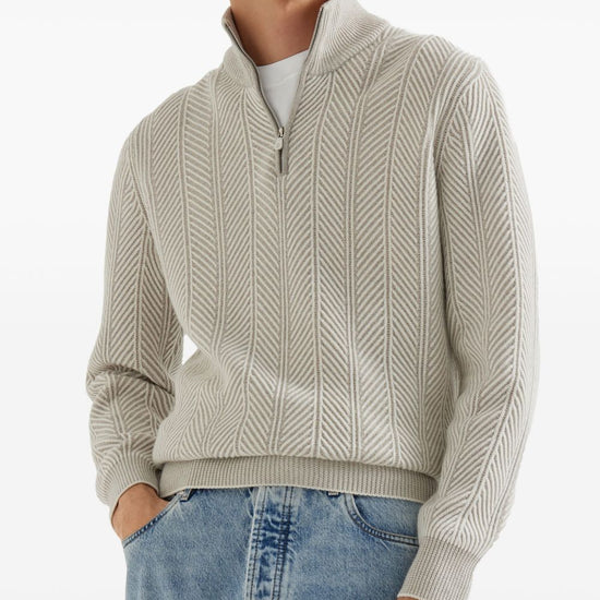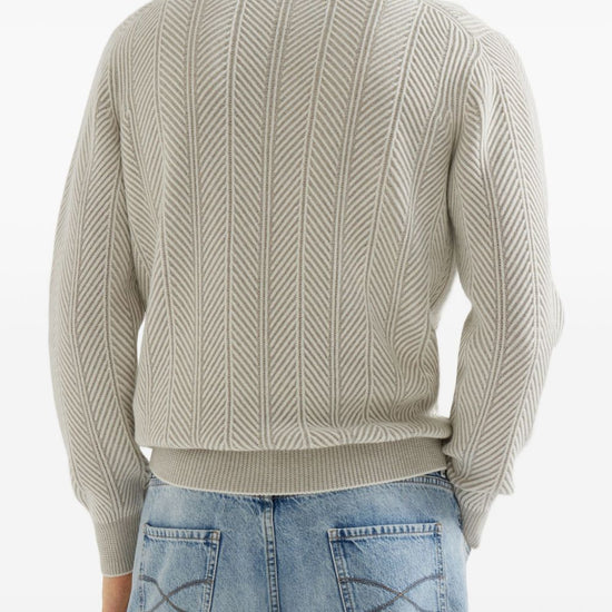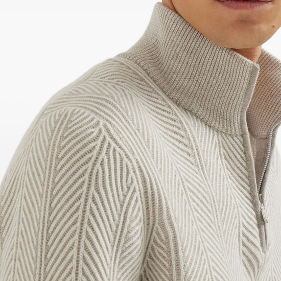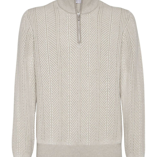 Brunello Cucinelli Herringbone twill zip-neck sweater