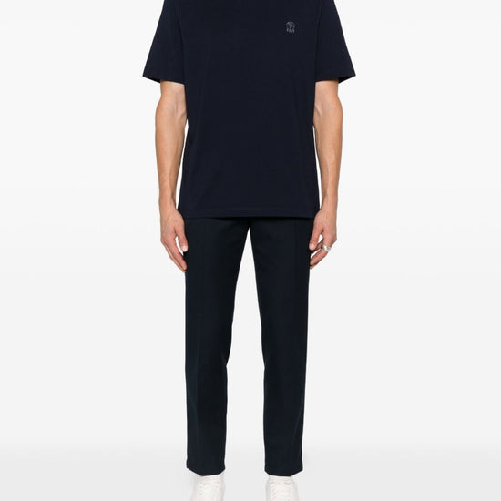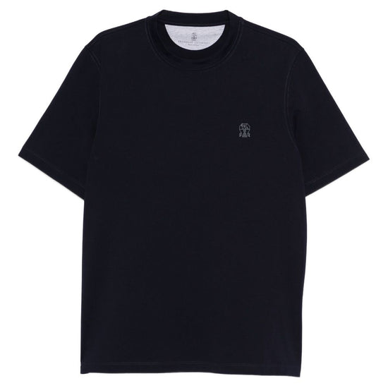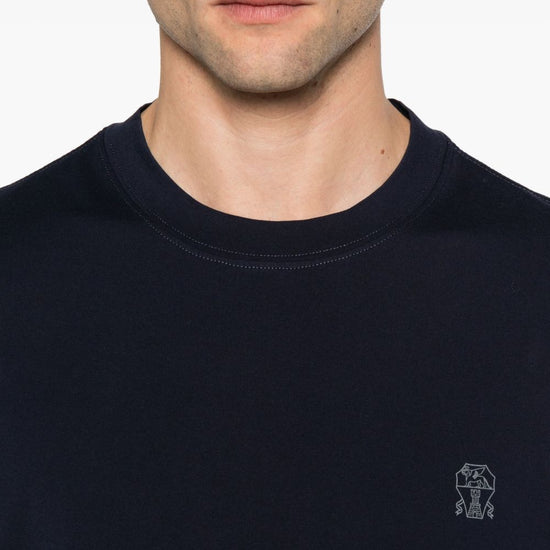 Navy blue, crew neck, short sleeves, logo detail. logo cotton t-shirt