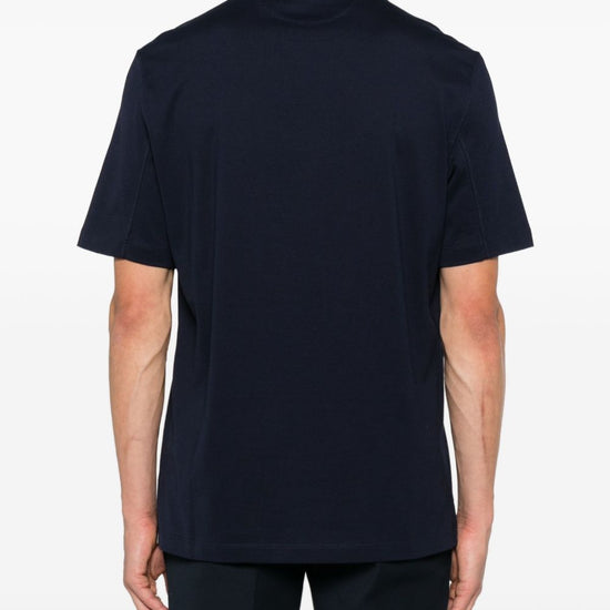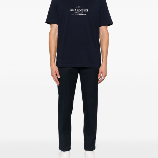 Navy blue, short sleeves, crew neck, cotton, graphic print. printed cotton t-shirt
